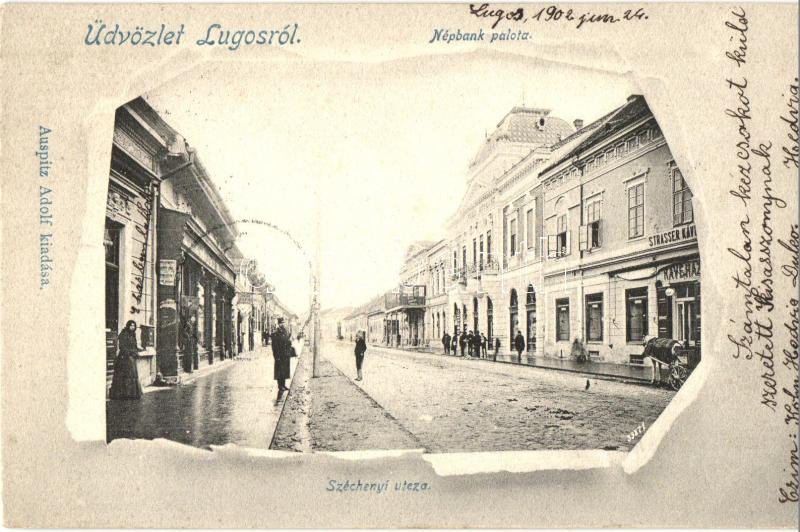Lugos, Lugoj; Népbank palota, Széchenyi utca, Strasser Kávéház, Auspit... https://www.darabanth.com/hu/282-Gyorsarveres/282.0/Kepeslapok/Erdely~200008/Lugos-Lugoj-Nepbank-palota-Szechenyi-utca-Strasser-Kavehaz-Auspitz-Adolf-kiadasa-bank-p~II1455460