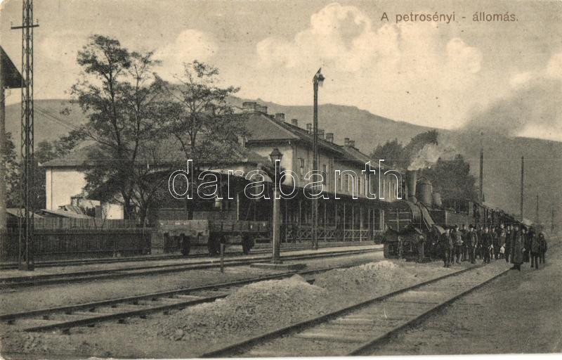 Leírás: Petrozsény, Petrosani; vasútállomás gőzmozdonnyal, Adler fényirda / railway station with locomotive (vágott / cut)