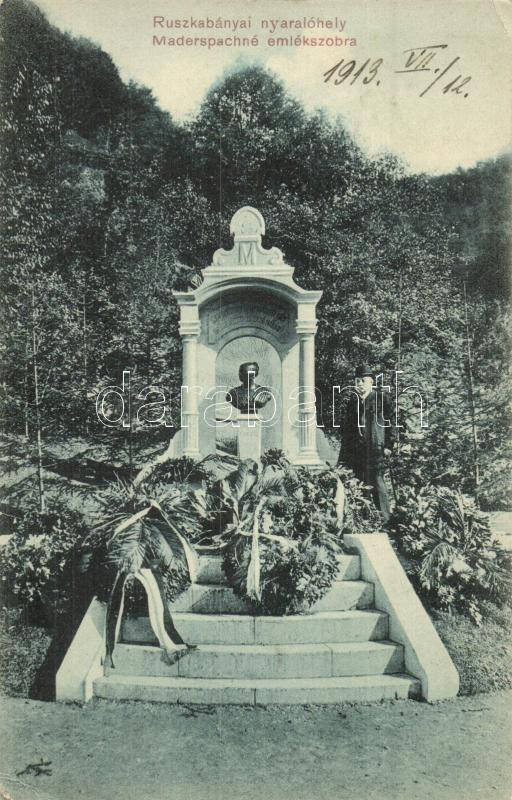 Leírás: Ruszkabánya, Rusca Montana; nyaralóhely, Maderspachné emlékszobra, Fuchs fényképei után / holiday resort, memorial statue, monument (EK)