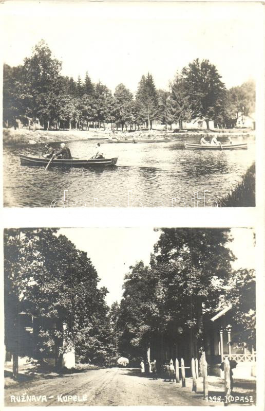 Leírás: 1939 Rozsnyófürdő, Roznava-kupele; Csónakázótó, utcarészlet / lake, street, photo