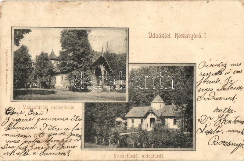 Leírás: Rozsnyó, Roznava; a vasasfürdői meleg- és hidegfürdő épületei, Sajó-Vidék kiadása / spa (EK)