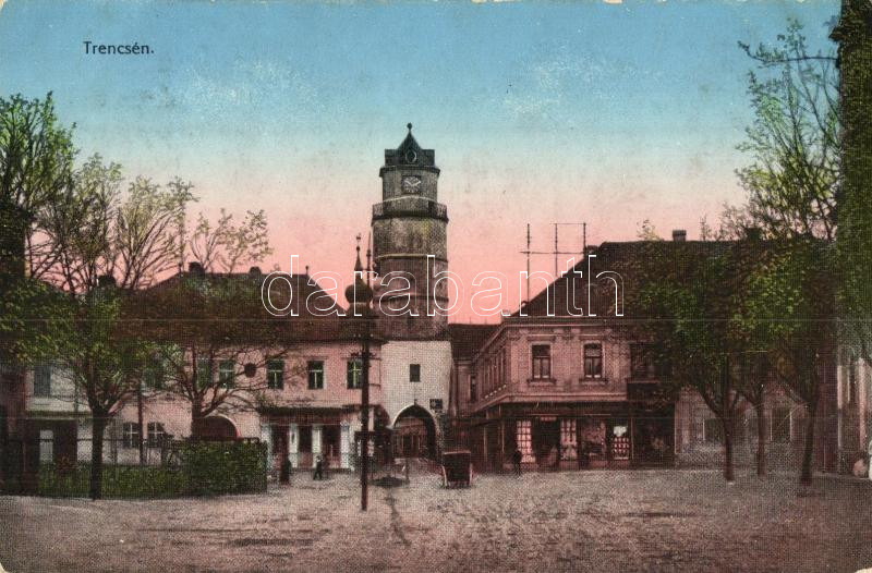 Trencsén, Trencín; Városi torony, utcakép, Klein Béla üzlete / street ... https://www.darabanth.com/hu/282-Gyorsarveres/282.0/Kepeslapok/Felvidek~200009/Trencsen-Trencin-Varosi-torony-utcakep-Klein-Bela-uzlete-street-view-shop-tower~II1458308