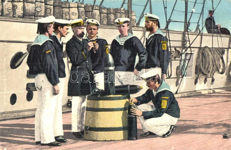 Pola, Artillerieunterricht / tüzérségi kiképzés a hajófedélzeten / K. ... https://www.darabanth.com/hu/282-Gyorsarveres/282.0/Kepeslapok/Hadihajo~200099/Pola-Artillerieunterricht-tuzersegi-kikepzes-a-hajofedelzeten-K-u-K-mariners-artiller~II1456517