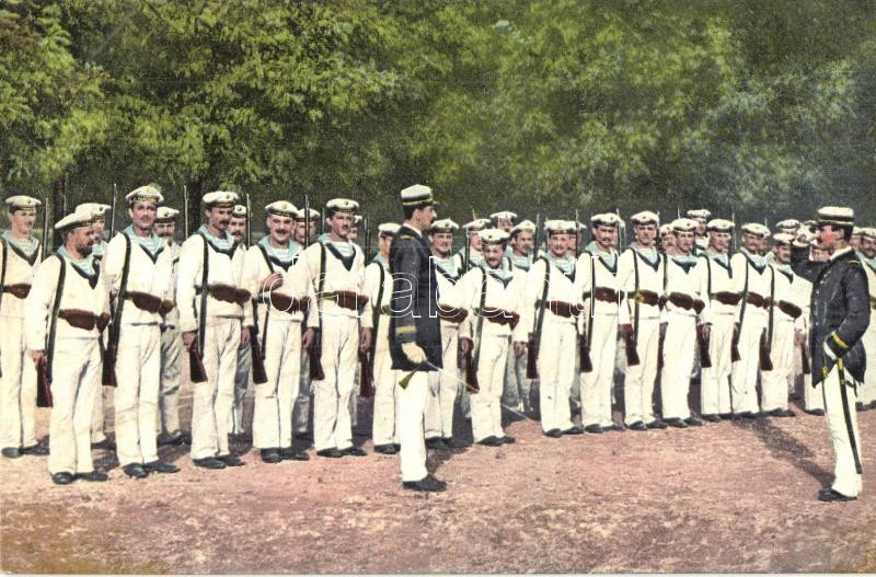 Leírás: Pola, Gewehrexerzieren / tengerészek fegyveres kiképzése / K. u. K. mariners gunnery drill