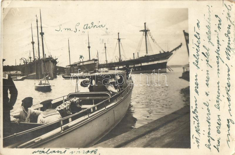 SMS Adria, az Osztrák-Magyar Haditengerészet csavaros fregattja, motor... https://www.darabanth.com/hu/282-Gyorsarveres/282.0/Kepeslapok/Hadihajo~200099/SMS-Adria-az-Osztrak-Magyar-Haditengereszet-csavaros-fregattja-motorcsonak-tengereszekkel-SM~II1460113