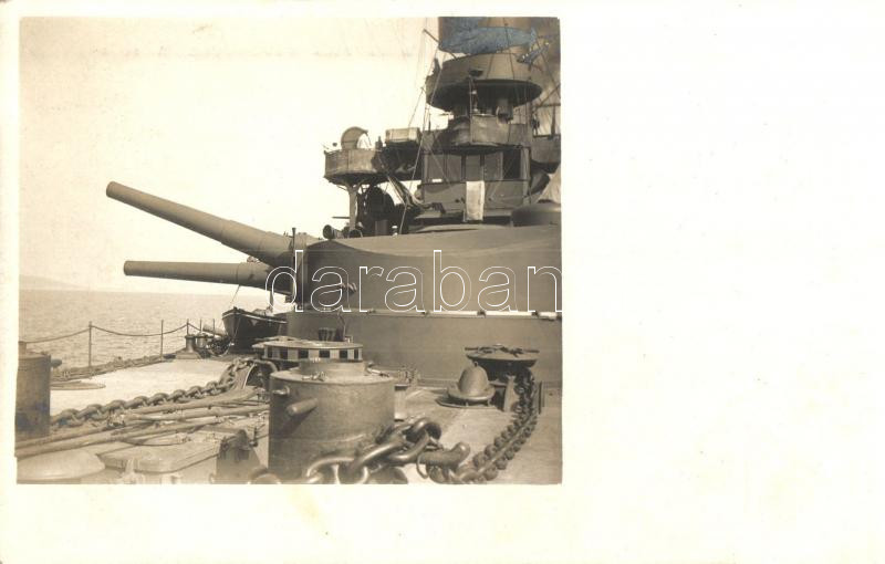 SMS Erzherzog Friedrich, a K. u. K. haditengerészet csatahajója, elülső fedélzet, ágyúk, Verlag F. W. Schrinner / SMS Erzherzog Friedrich, Austro-Hungarian Navy pre-dreadnought battleship, forward deck, guns, photo