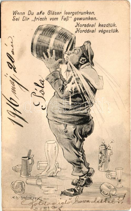 Leírás: Wenn Du alle Glaser leergetrunken... / K. u. K. mariner, humour, "SMS Babenberg" Feldpost s: Ed. Dworak (EK)