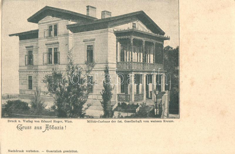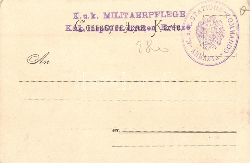 Abbazia, Militär-Curhaus der österreichische Gesellschaft vom weissen Kreuze / military sanatorium + "K.u.K. Militaerpflege K&K. Inspoffz.d.roten Kreuze" + "Stations-Kommando-Abbazia" stamp on the backside (EK)