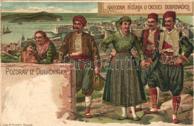Dubrovnik, Ragusa; Narodna nosnja u okolici Dubrovackoi / general view... https://www.darabanth.com/hu/282-Gyorsarveres/282.0/Kepeslapok/Horvatorszag-Delvidek~200011/Dubrovnik-Ragusa-Narodna-nosnja-u-okolici-Dubrovackoi-general-view-folklore-litho-s-W-S~II1460074