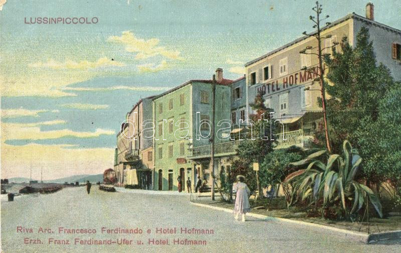 Leírás: Mali Losinj, Lussinpiccolo; Riva Arc. Francesco Ferinando e Hotel Hofmann / port, hotel