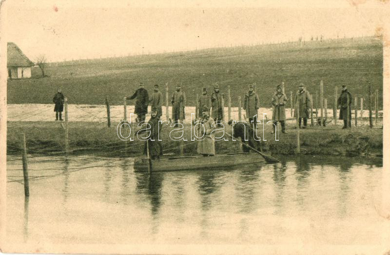 1916 K.u.K. katonák drótakadályokat építenek egy folyó fölé / Herstellung von Draht-Hindernissen über einen Fluss / WWI K.u.K. military, production of wire obstacles over a river