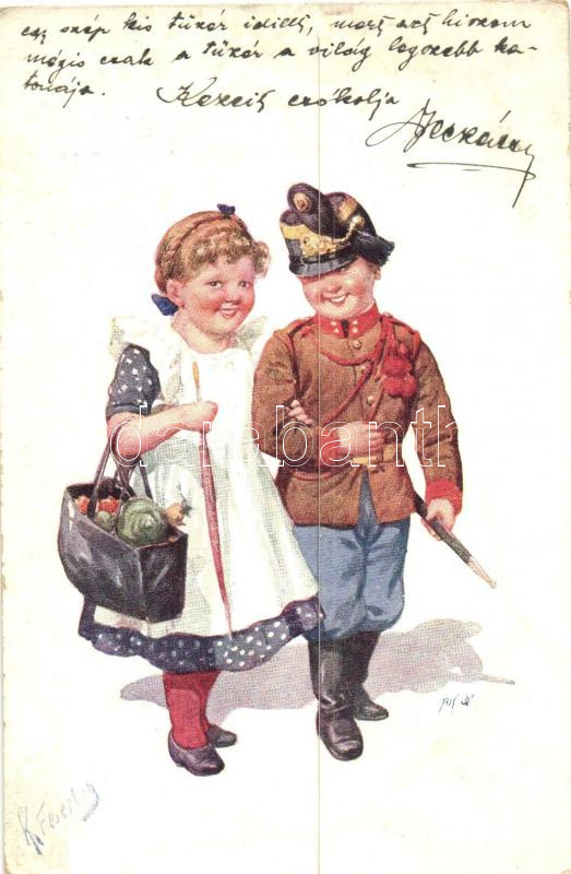 Small soldier boy with girl, B.K.W.I. 957-4. s: K. Feiertag https://www.darabanth.com/hu/282-Gyorsarveres/282.0/Kepeslapok/Katonai~200112/Small-soldier-boy-with-girl-BKWI-957-4-s-K-Feiertag~II1454813