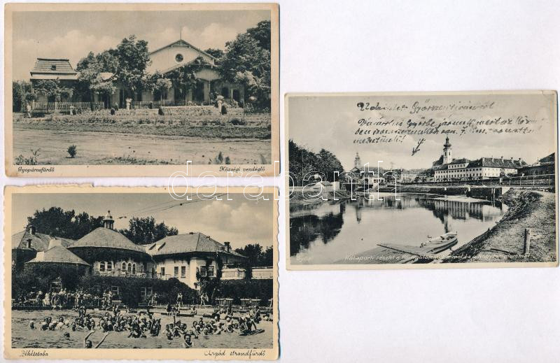 Leírás: 20 db főként RÉGI magyar városképes képeslap, vegyes minőség; szobrok, iskolák, fürdők, templomok / 20 mostly pre-1945 Hungarian town-view postcards; statues, schools, baths, churches, mixed quality