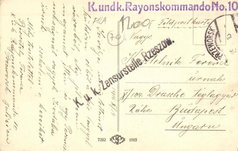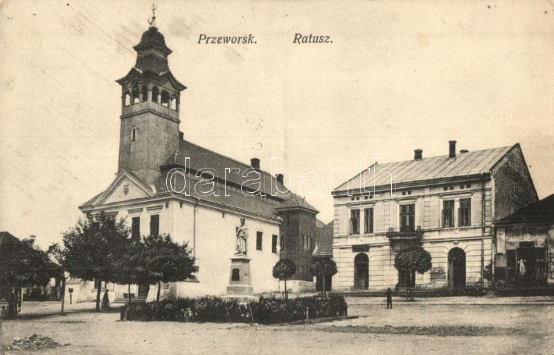 Przeworsk, Ratusz / town hall, church, monument + "K.u.K. Rayonsk... https://www.darabanth.com/hu/282-Gyorsarveres/282.0/Kepeslapok/Lengyelorszag~200044/Przeworsk-Ratusz-town-hall-church-monument-plus-KuK-Rayonskommando-No10-stamp-on-the-backsi~II1457294