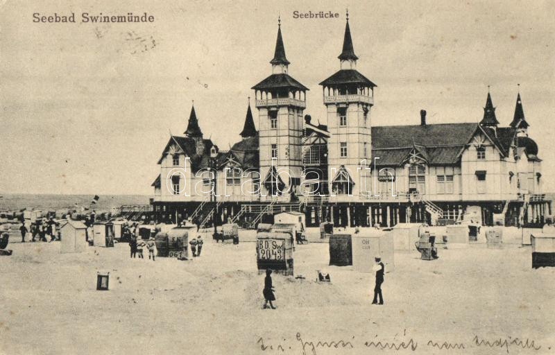 Leírás: Swinoujscie, Swinemünde; Seebad, Kaiser Friedrich Seebrücke / molo, beach (EK)