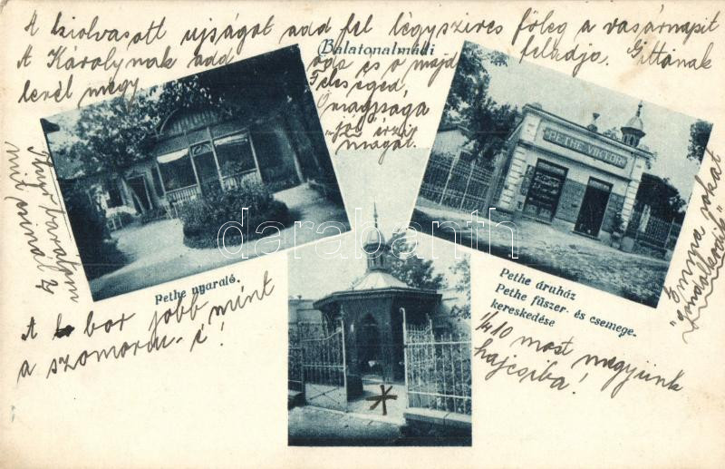 Leírás: Balatonalmádi, Pethe áruház, fűszer és csemegekereskedés, Pethe nyaraló, Özv. Pethe Viktorné kiadása