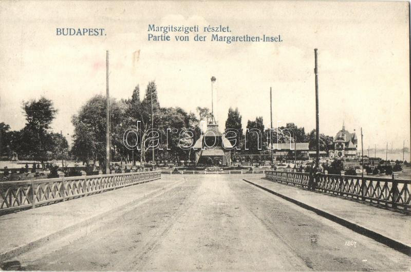 Leírás: Budapest XIII. Margitsziget részlet a hídról, Schwarcz J.