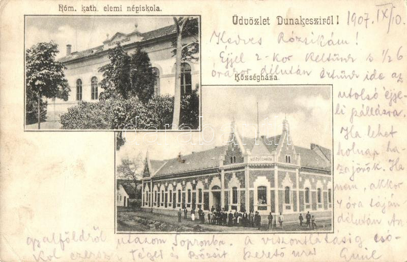 Dunakeszi, Római katolikus elemi népiskola, Községháza (fa) https://www.darabanth.com/hu/282-Gyorsarveres/282.0/Kepeslapok/Magyarorszag~200007/Dunakeszi-Romai-katolikus-elemi-nepiskola-Kozseghaza-fa~II1458487