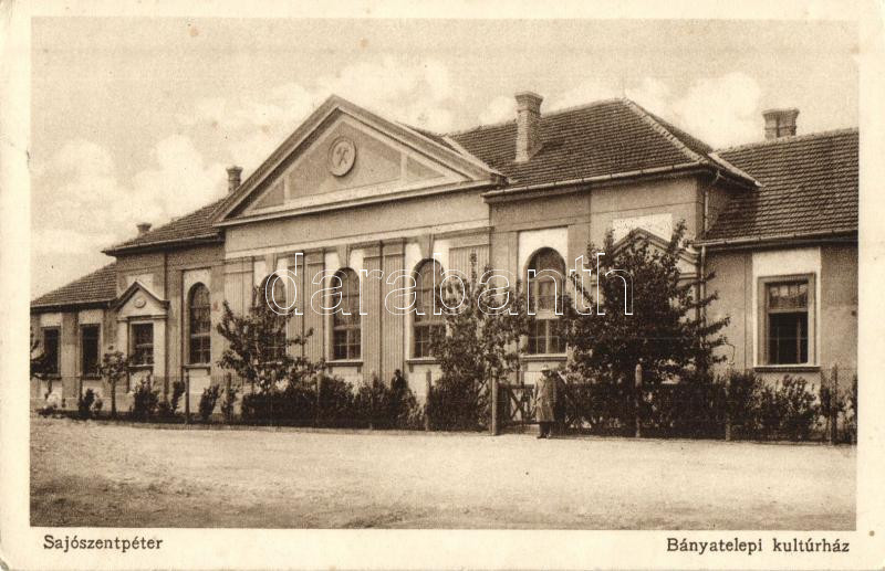 Sajószentpéter, Bányatelepi kultúrház; Frank Jenő kiadása (EK) https://www.darabanth.com/hu/282-Gyorsarveres/282.0/Kepeslapok/Magyarorszag~200007/Sajoszentpeter-Banyatelepi-kulturhaz-Frank-Jeno-kiadasa-EK~II1456485