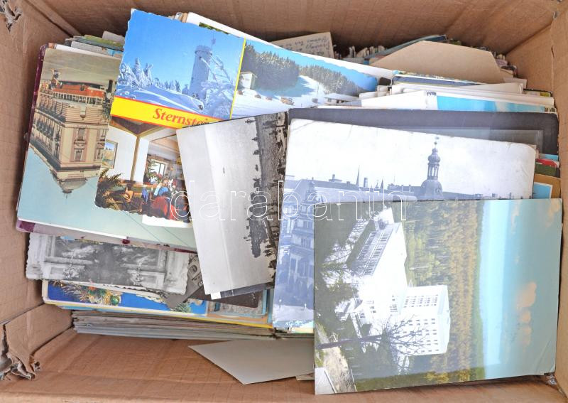 Leírás: 1.000-1.500 vegyes modern képeslap karton dobozban