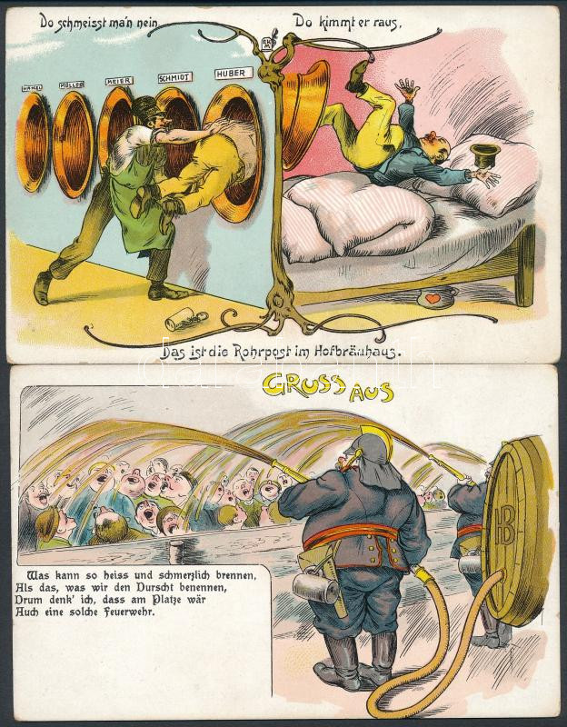 Leírás: 3 db RÉGI humoros német motívumlap; Hofbrau sör reklám / 3 pre-1945 humorous German motive postcard; Hofbrau bier advertisement, Ottmar Zieher litho