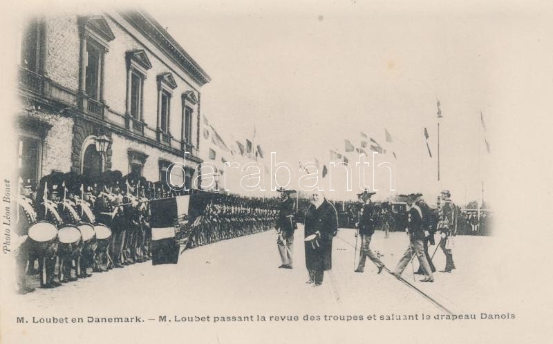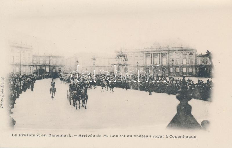 Le Président en Danemark - M. Loubet et le Roi Christian / Émile Loubet visiting King Christian of Denmark; series of 4 unused postcards (gluemark on backside)