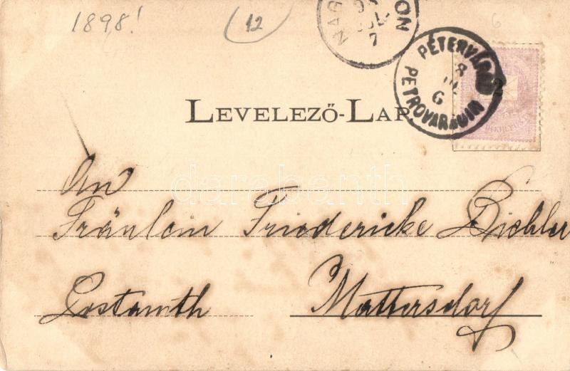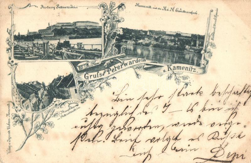 1898 Pétervárad, Petrovaradin; Kamánc, kadétiskola, Fő út, Ignatz Urban kiadása / fortress, Kamenitz, military school, main street, floral, Art Nouveau (EK)