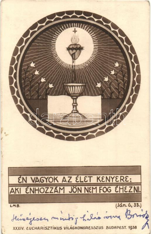 1938 Budapest XXXIV. Eucharisztikus Világkongresszus 'Én vagyok a... https://www.darabanth.com/hu/282-Gyorsarveres/282.0/Kepeslapok/Vallas~200089/1938-Budapest-XXXIV-Eucharisztikus-Vilagkongresszus-En-vagyok-az-elet-kenyere-34th-Internati~II1453902
