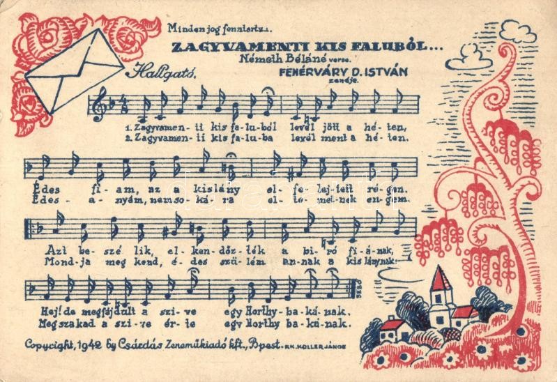 Leírás: 2 db RÉGI használatlan kottás képeslap / 2 pre-1945 unused motive cards, sheet music