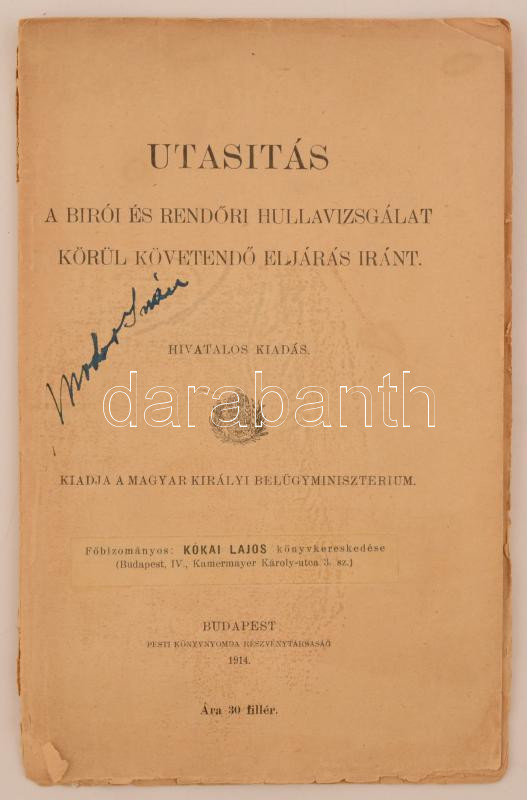 Utasítás a bírói és rendőri hullavizsgálat körül követendő eljárás irá... https://www.darabanth.com/hu/282-Gyorsarveres/282.0/Konyvek/Konyvek-Jog~17/Utasitas-a-biroi-es-rendori-hullavizsgalat-korul-kovetendo-eljaras-irant-Budapest-19~II1426886