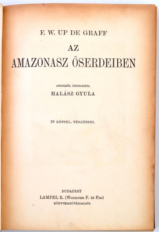 F. W. Up de Graff: Az Amazonasz őserdeiben. A Magyar Földrajzi Társaság Könyvtára. Angolból átdolgozta: Halász Gyula. Budapest, é. n., Lampel R. (Wodianer F. és Fiai) Könyvkiadóvállalata, 164 p. Kiadói kissé kopottas gerincű aranyozott egészvászon sorozatkötésben, fekete-fehér fotókkal, és egy térképekkel illusztrálva, egy kijáró lappal.