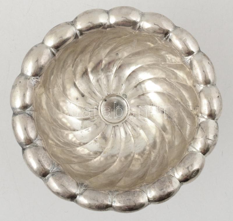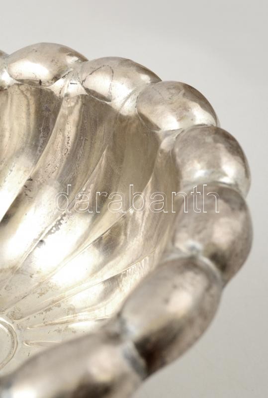 Leírás: Ezüst (Ag.) csavart bordázatú talpas kínáló, jelzett, mesterjeggyel, m:11 cm, d:16 cm, nettó:230g