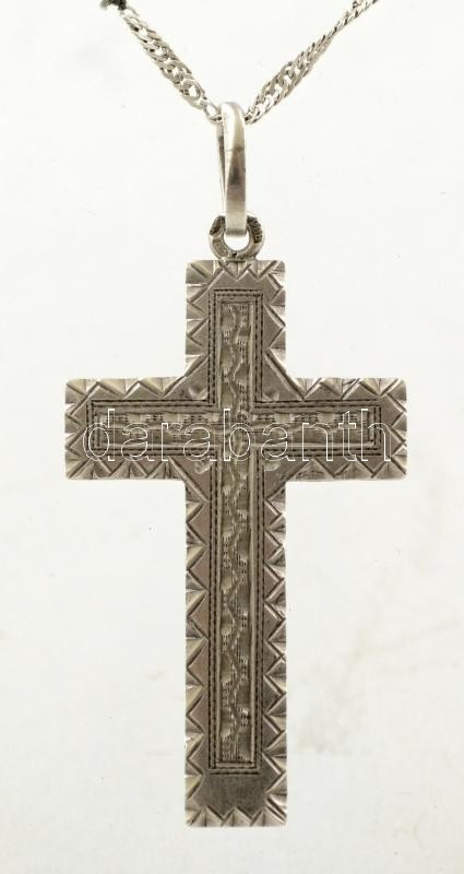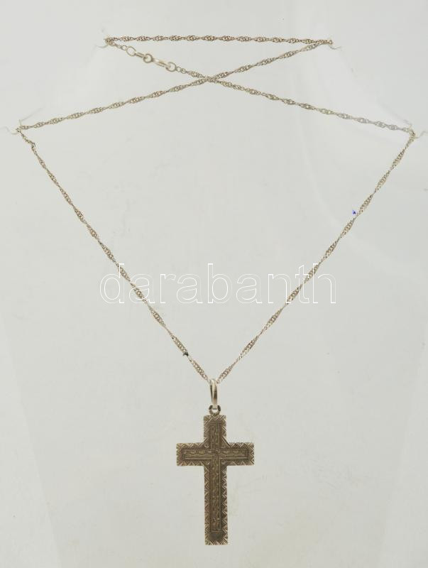 Leírás: Ezüst (Ag.) nyaklánc kereszt medállal, jelzett, h: 50 cm, nettó 6,5 g