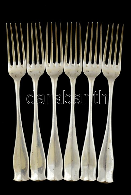 Leírás: Ezüst desszert villa, Ag, jelzett, nettó:283gr., 6db, 18cm/ Silver dessert fork, Ag, marked, net 283gr., 6pz., 18 cm,