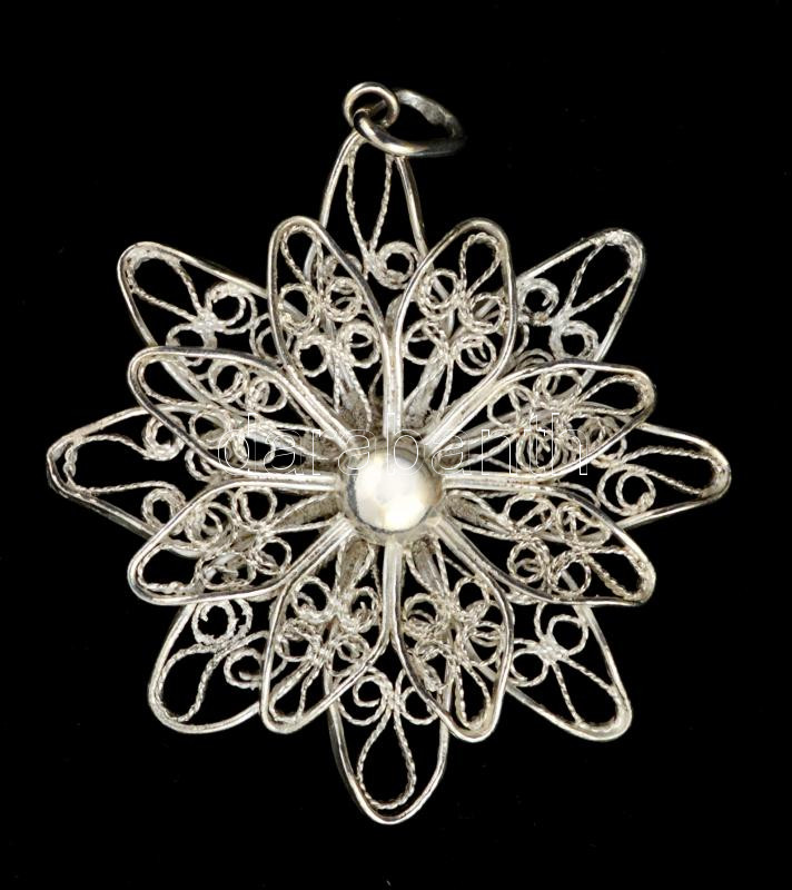 Leírás: Ezüst(Ag) filigrán virágos medál, jelzett, nettó: 5,8 g