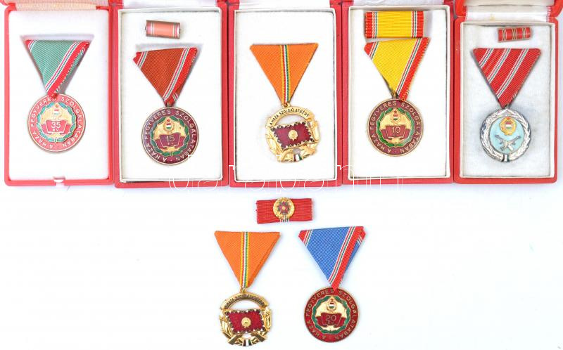 1954. "Szolgálati érdemérem" ezüstözött, zománcozott Br kitüntetés mellszalagon, műanyag jelvénnyel, tokban + 1956. "Haza Szolgálatáért Érdemérem" arany fokozata, zománcozott, aranyozott Br kitüntetés mellszalagon (2x) egyik tokban + 1965. "Szolgálati Érdemérem - A Haza Fegyveres Szolgálatában" 10, 15, 20 és 35 után, zománcozott Br kitüntetés mellszalagon (4xklf) közülük három tokban, egy szalagsávval, egy műanyag jelvénnyel + egy miniatűr szalagsávon T:2