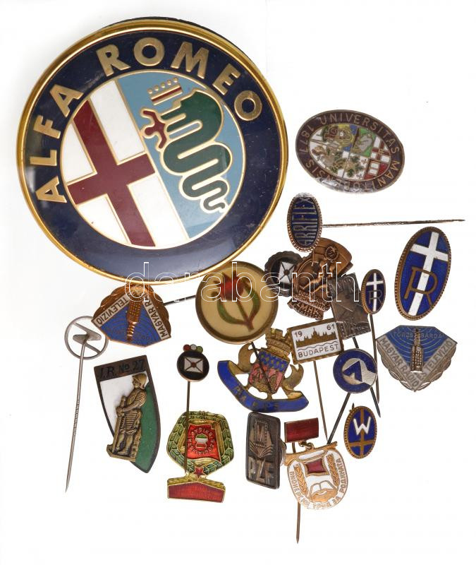 20db-os vegyes magyar és külföldi jelvény és kitűző tétel, közte "Alfa Romeo" autójelvény, "Magyar Rádió és Televízió Törzsgárda" zománcozott jelvény T:2,2-