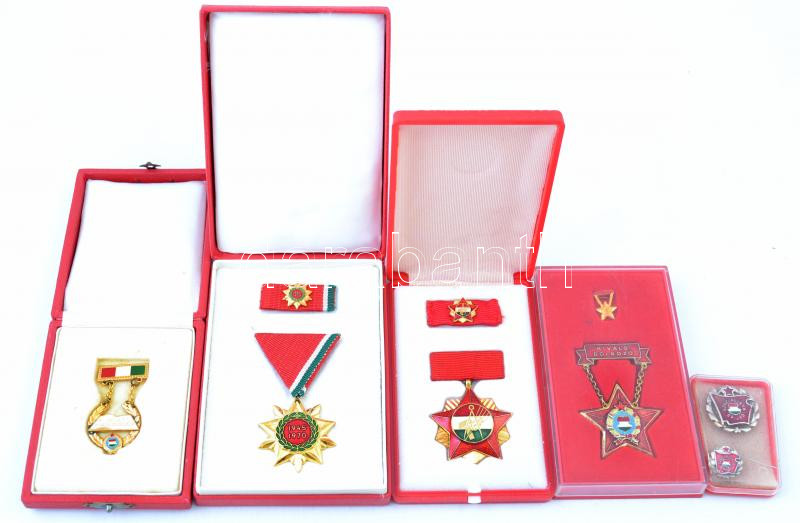 5db-os vegyes magyar szocialista kitüntetés és jelvény tétel, közte "A Tanács Kiváló Dolgozója", "Felszabadulási Jubileumi Emlékérem" mindegyik tokban T:1-,2