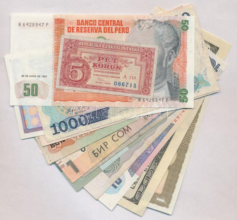 Leírás: 13db-os vegyes külföldi bankjegy tétel, közte Csehszlovákia 1945. 20K, Indonézia 1987. 1000R, Vietnám 100$ égetési pénz T:I-III
