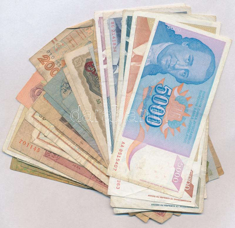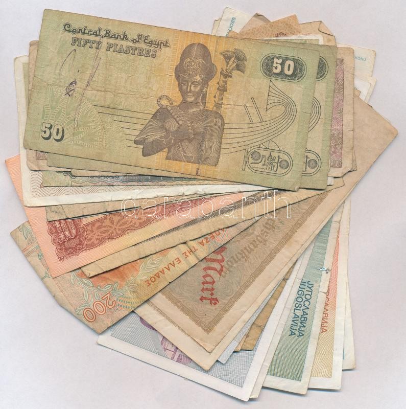 30db-os vegyes külföldi bankjegy tétel, közte Csehszlovákia, Egyiptom. Jugoszlávia, Szovjetunió T:III,III-