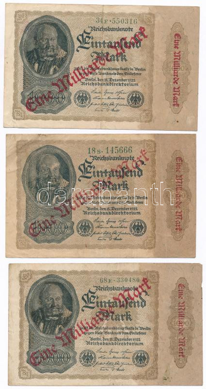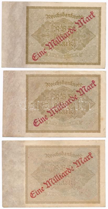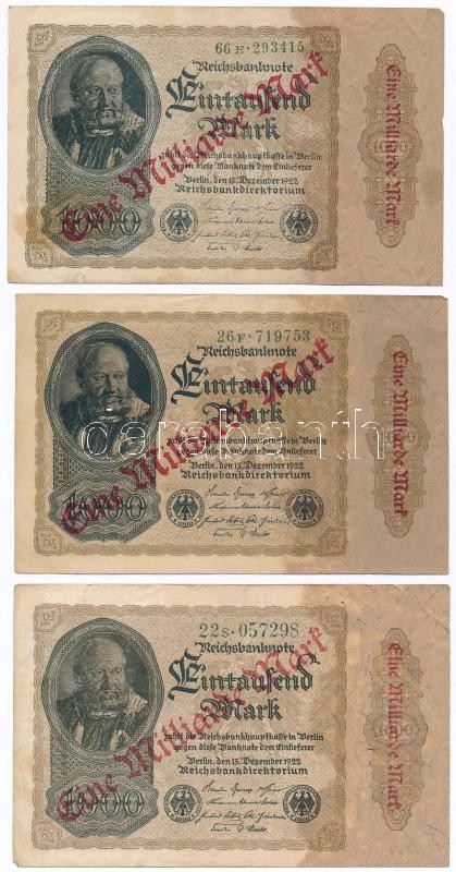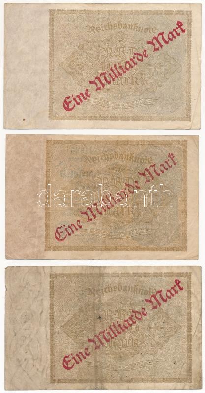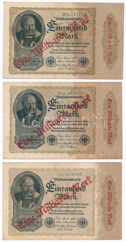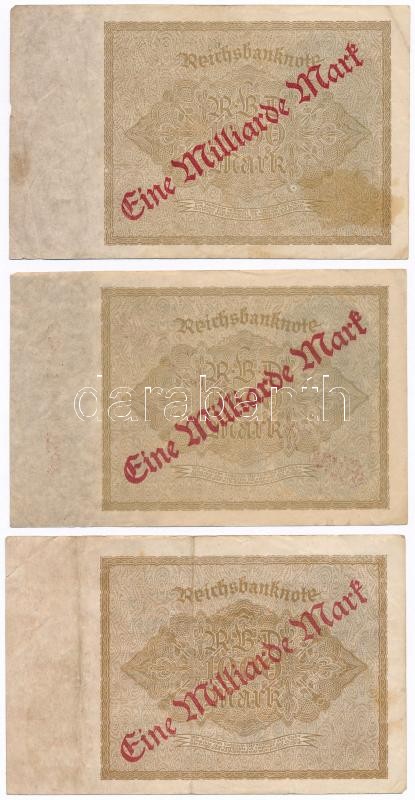 Németország / Weimari Köztársaság 1922. 1000M "Eine Milliard Mark" felülnyomással (9x) T:III