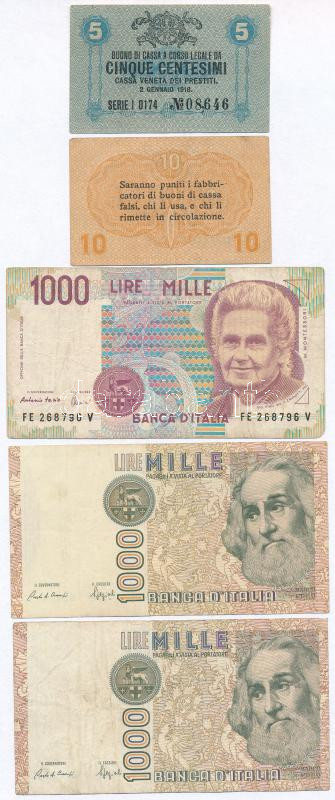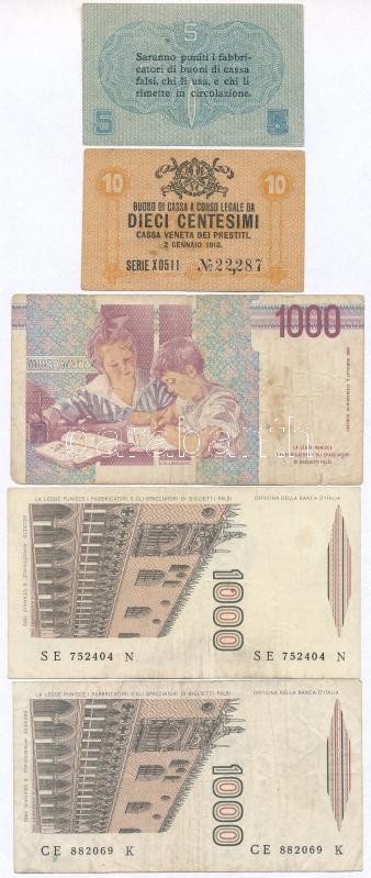 Leírás: Olaszország / Velence / Osztrák-magyar megszállás 1918. 5c + 10c + 1L + 10L + Olaszország 1982. 1000L (2x) + 1990. 1000L T:III-IV