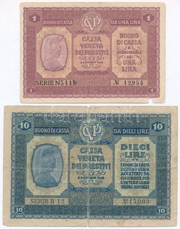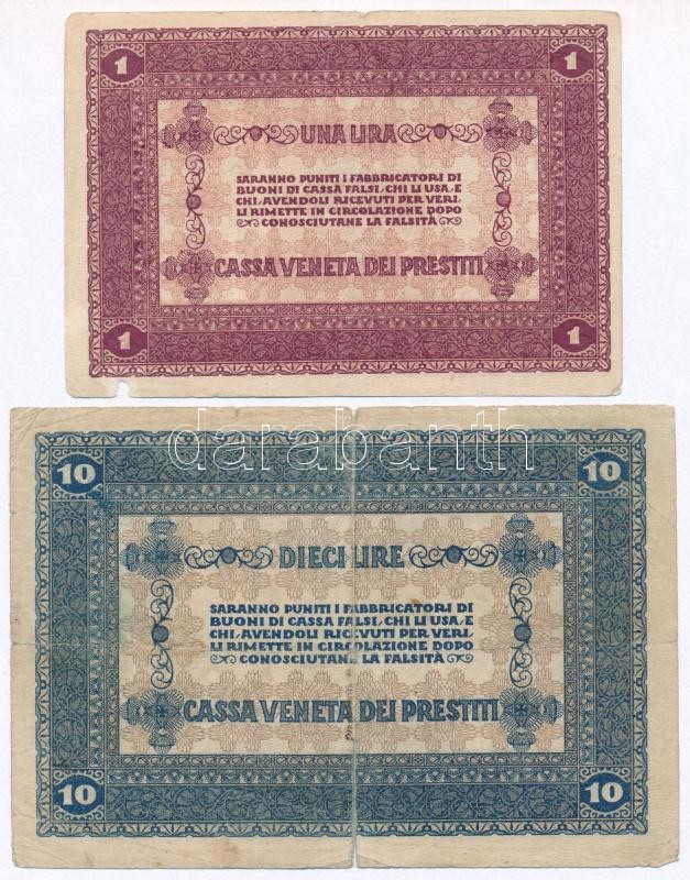 Olaszország / Velence / Osztrák-magyar megszállás 1918. 5c + 10c + 1L ... https://www.darabanth.com/hu/282-Gyorsarveres/282.0/Numizmatika/Kulfoldi-bankjegyek~300011/Olaszorszag-Velence-Osztrak-magyar-megszallas-1918-5c-plus-10c-plus-1L-plus-10L-plus-Olaszorszag-1982~II1458678
