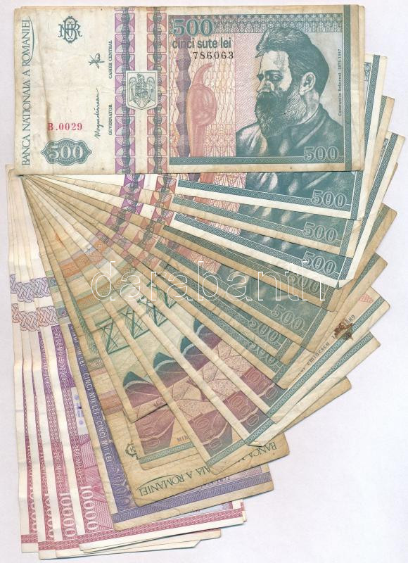 Romania 1991-1994. 500-10.... https://www.darabanth.com/hu/282-Gyorsarveres/282.0/Numizmatika/Kulfoldi-bankjegyek~300011/Romania-1991-1994-500-10000L-21x-TIII--Romania-1991-1994-500-10000-Lei-21x-CF~II1456453