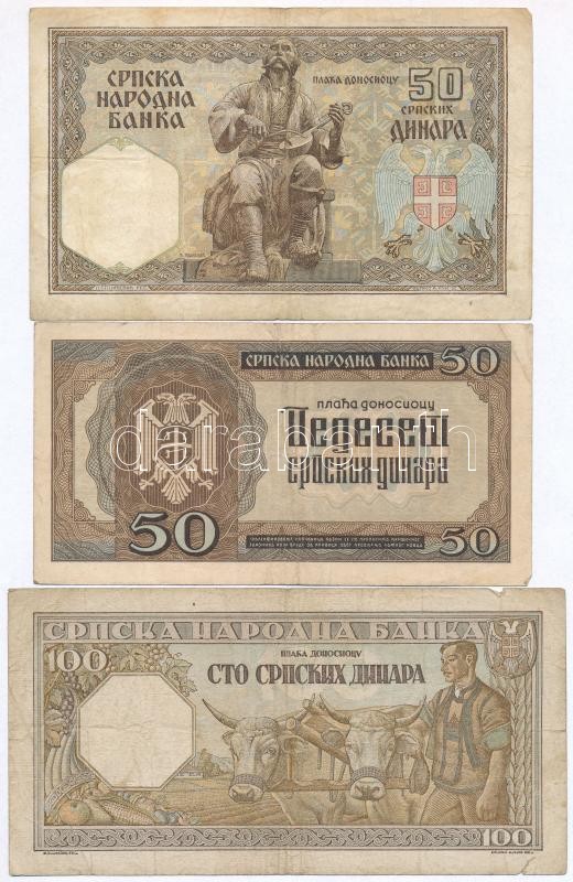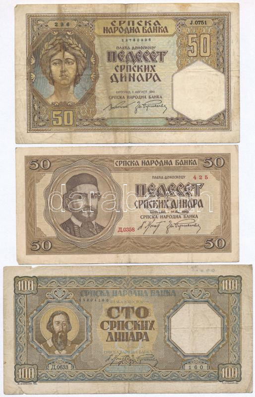 Serbia / German occupation 1941. 50 Dinara + 1942. 50 Dinara + 1943. 100 Dinara C:F,VG