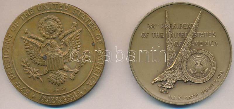 Amerikai Egyesült Államok DN "Richard Milhous Nixon, az Amerikai Egyesült Államok 37. elnöke" Br emlékplakett. Szign.: Ralph J. Menconi (69mm) + DN "Gerald R. Ford, az Amerikai Egyesült Államok 38. elnöke" Br emlékplakett. Szign.: Mico K / Eliscu (69mm) T:1-2 apró ph, oxidációs fo.