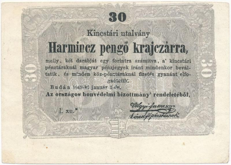 Leírás: 1849. 30kr "Kossuth bankó" csillagozott soroszatszám, félrecsúszott nyomat T:III