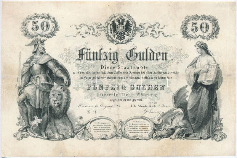 Adamo G99 https://www.darabanth.com/hu/282-Gyorsarveres/282.0/Numizmatika/Magyar-bankjegyek~300006/1866-50G-vizjeles-papiron-Trestauralt-R--Adamo-G99~II1460561