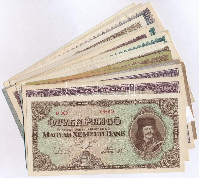 1945-1946. 20db-os inflációs bankjegy gyűjtemény, benne: 1945. 50P + 1... https://www.darabanth.com/hu/282-Gyorsarveres/282.0/Numizmatika/Magyar-bankjegyek~300006/1945-1946-20db-os-inflacios-bankjegy-gyujtemeny-benne-1945-50P-plus-1945-100P-vizjeles-papir~II1455201