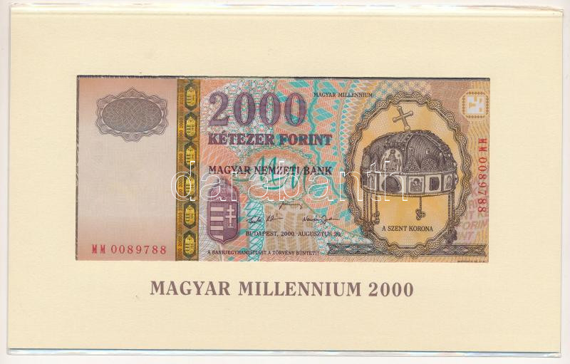 2000. 2000Ft "Millennium" eredeti, bontatlan csomagolásban T... https://www.darabanth.com/hu/282-Gyorsarveres/282.0/Numizmatika/Magyar-bankjegyek~300006/2000-2000Ft-Millennium-eredeti-bontatlan-csomagolasban-TI~II1444167